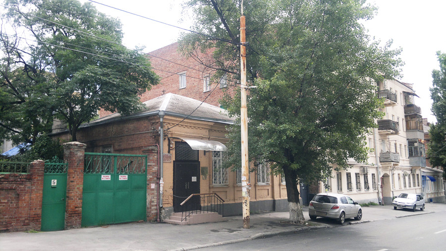 (Гимназия Любимовой, находилась на пересечении нынешних Социалистической и Крепостного, на северо-западном углу. Сейчас там развалины и огороженная площадка. Интересно, сейчас есть в Ростове магазин, в который можно прийти и сказать, «Средняя школа № 324, первый класс»?)